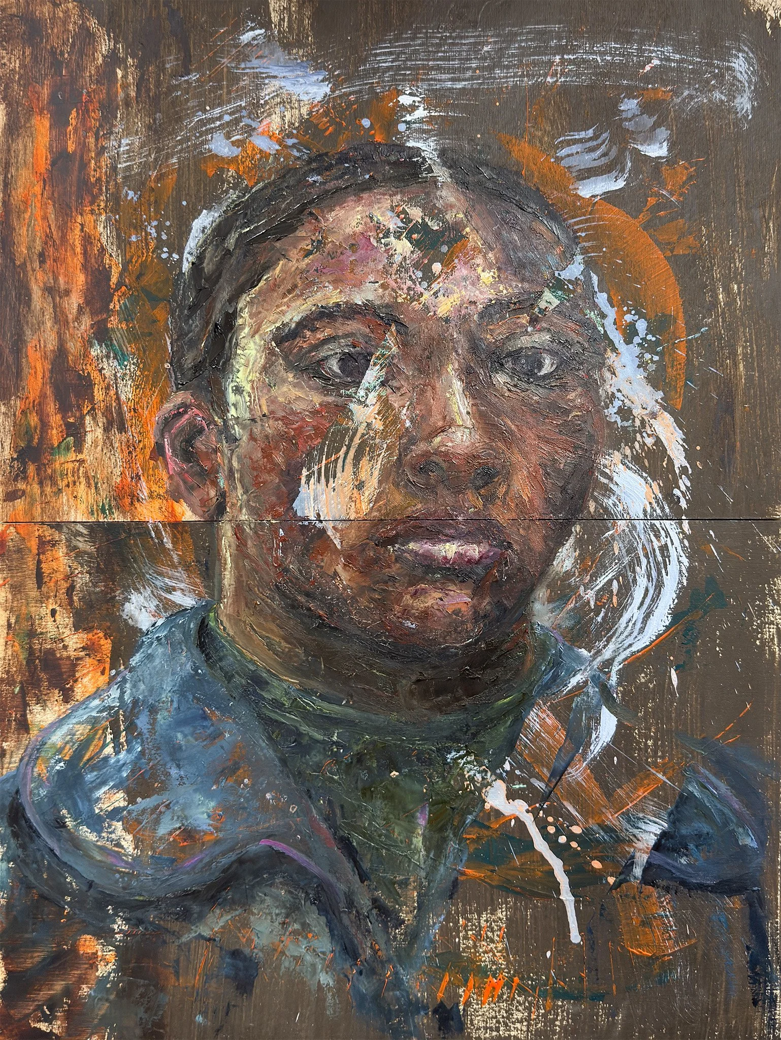 Oil and wax on reclaimed wood. 12 x 12 inches.